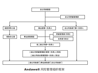 Andawell 建立了一整套在高管层领导下的,结合保密管理在内的风险管理组织和框架,以重大风险为核心关注点,职责明晰,精准防控,全员参与,在化解经营风险方面发挥着重要作用。